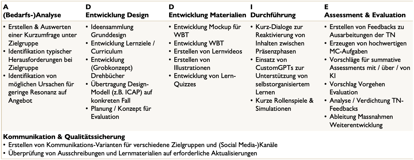z.B. Übertragung von Design-Modellen wie ICAP oder 4C/ID auf einen konkreten Fall