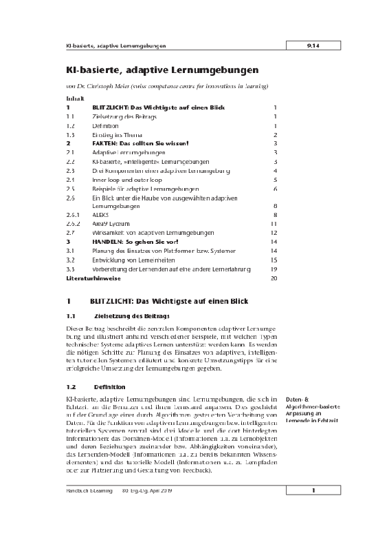 7.50.261 KI-basierte, adaptive Lernumgebungen