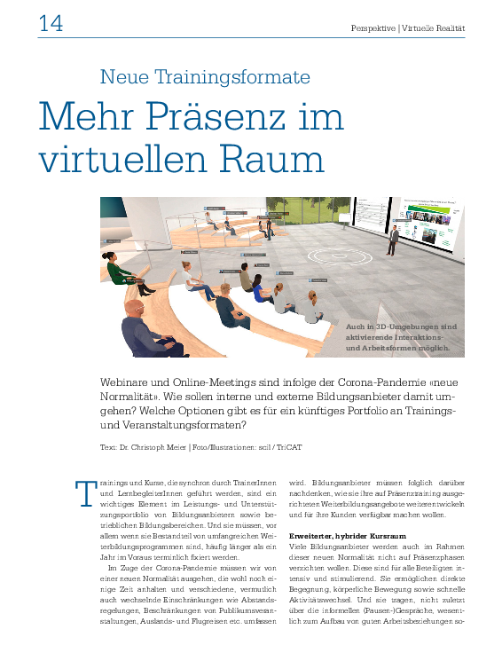 Mehr Präsenz im virtuellen Raum. Neue Trainingsformate