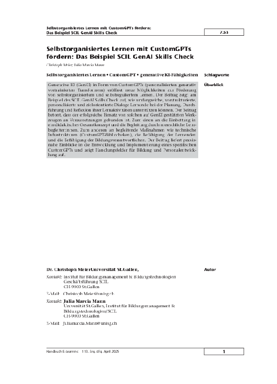 Autoren: C. Meier, S. Seufert, J. Guggemos & J. Spirgi
