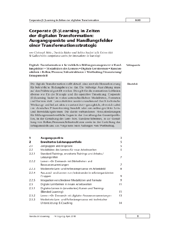 3.3.2 Corporate (E-)Learning in Zeiten der digitalen Transformation. Ausgangspunkte und Handlungsfelder einer Transformationsstrategie