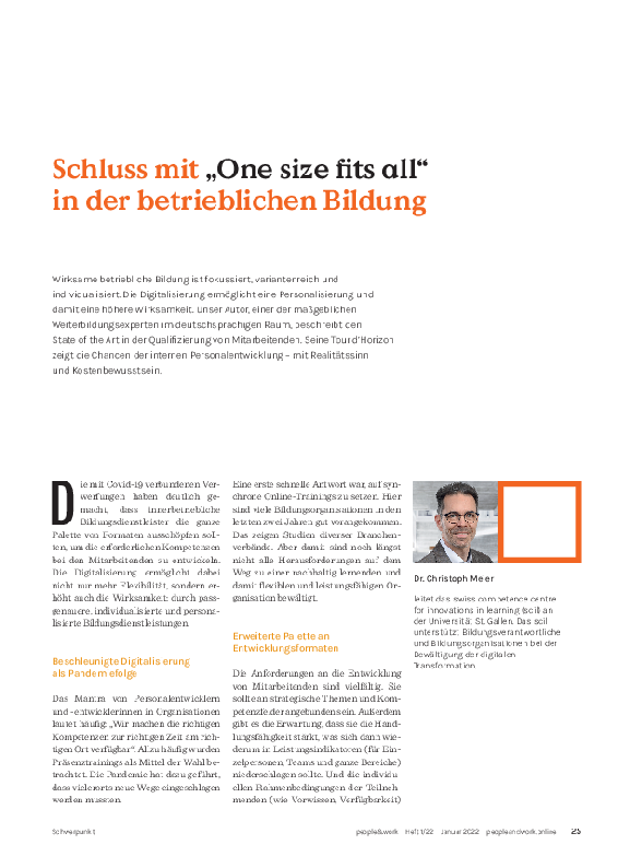 Personalisierte Kompetenzentwicklung: Technologie-Unterstützung, Menschen als Erfolgsfaktoren und neue Spannungsfelde