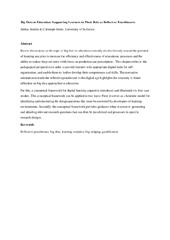 Big data in education: supporting learners in their role as reflective practitioners.
