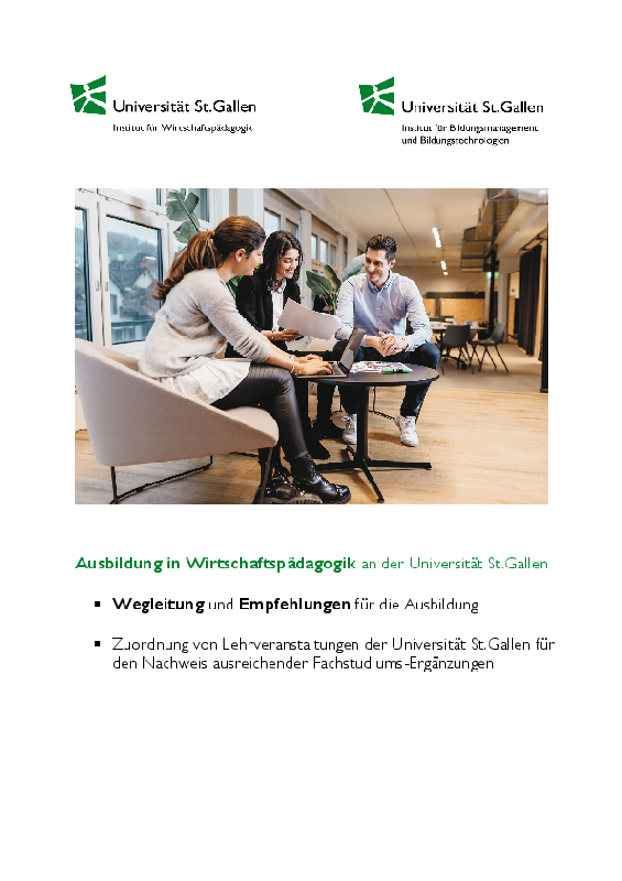 The business education degree is an additional qualification that can only be obtained in conjunction with a university Master's degree. The study programme in business education can be started during the Bachelor's degree, when entering the Master's level or as additional training following the Master's degree.